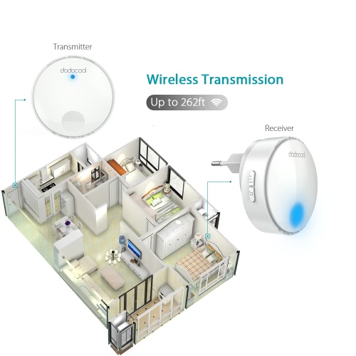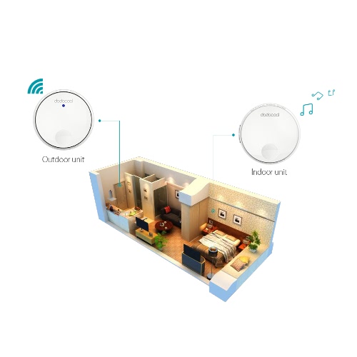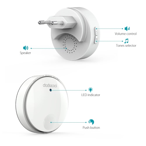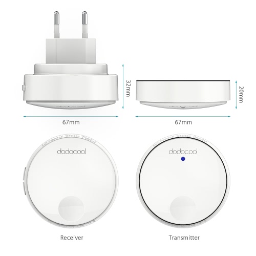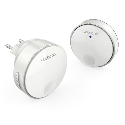 dodocool Self-powered Wireless Doorbell Kit includes one self-powered transmitter and one plug-in receiver with LED lights. It offers a 262ft wireless operating range and has the flexibility to be mounted or placed anywhere around your home. The self-powered transmitter is rated IPX7 and requires no batteries. The receiver features 38 doorbell chimes, 4 adjustable volume levels and CD quality sound. It can be conveniently used in homes, offices, factories and more.