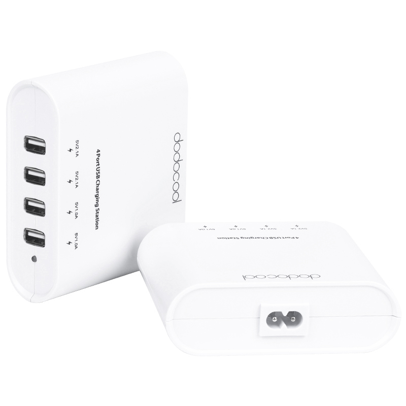 This dodocool DA05 4-port USB Charger eliminates the need for multiple chargers and outlets, which is a great accessory for iPhone, iPad, HTC phones, Samsung Galaxy Tab, Samsung Galaxy Phone, Samsung Galaxy Note, Blackberry, MP3 players, digital camera, and other USB devices. Compact Design and Flip Down AC Prongs make it easy to carry on travel.