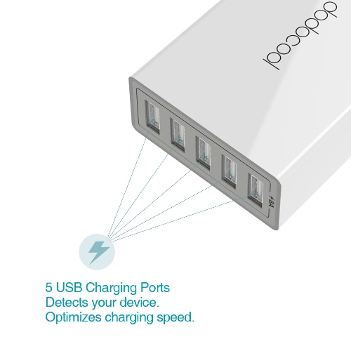 Overviewdodocool 5-Port USB Charging Station lets you charge up to 5 USB-powered devices simultaneously. Max 5V 2.4A per USB port, Max 8A total USB output. It's the must-have charging solution for home, travel and office.